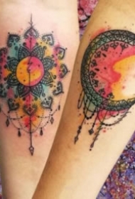 泼墨日月纹身,卡通月亮和太阳纹身图案