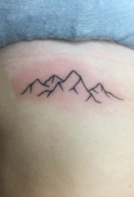 小山峰纹身 女生侧腰上黑色的山脉纹身图片
