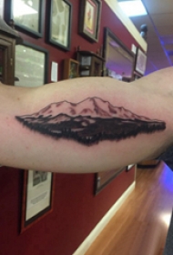 黑灰写实纹身 男生手臂上黑色的山脉纹身图片