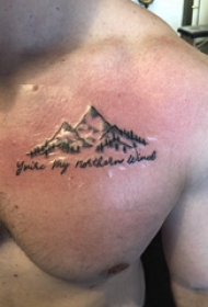 小山峰纹身 男生胸上山峰和英文纹身图片
