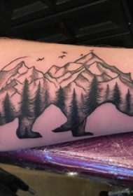 手臂纹身素材 男生手臂上山脉和熊纹身图片