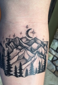 山峰的纹身 男生手臂上黑色的山脉纹身图片