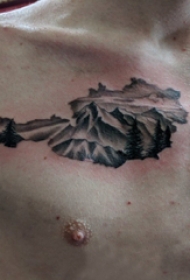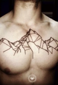 山脉纹身 男生锁骨上黑色的山脉纹身图片
