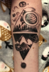 几何元素纹身 男生手臂上星球和山脉纹身图片