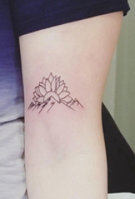 极简线条纹身 女生手臂上莲花和山脉纹身图片