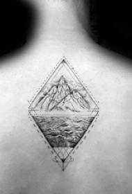 三角形纹身图 男生手臂上黑色的山脉纹身图片