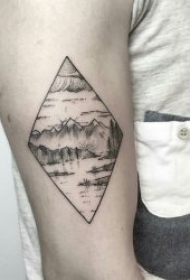 三角形纹身图 男生手臂上三角形和风景纹身图片