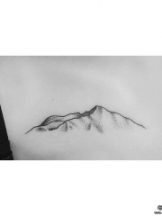 背部山脉点刺简约纹身图案