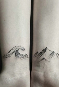 适合情侣的手腕点刺山脉海浪纹身图案