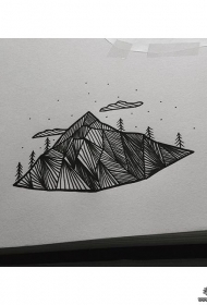 欧美山脉线条几何纹身图案手稿