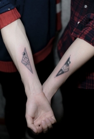 情侣手臂几何山脉纹身图案