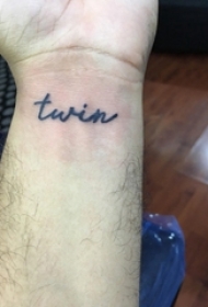 男生手腕上黑色简单抽象线条有意义的英文单词纹身图片