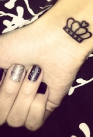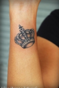 女生手腕上黑灰素描点刺技巧文艺唯美皇冠纹身图片