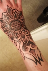 女生手腕上黑灰素描点刺技巧文艺唯美梵花花纹纹身图片