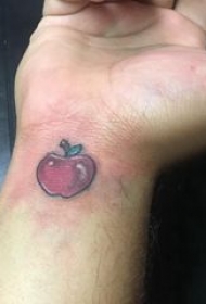 苹果图案纹身 男生手腕上彩色的苹果纹身图片