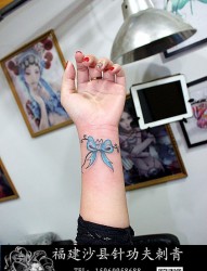 手腕蝴蝶结纹身
