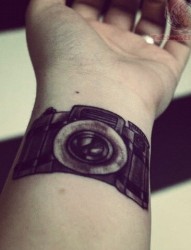 手腕好看时尚的相机纹身