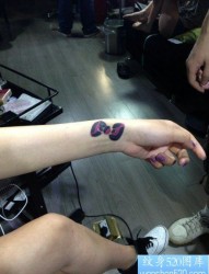 女人手腕小巧时尚的图腾蝴蝶结纹身图片