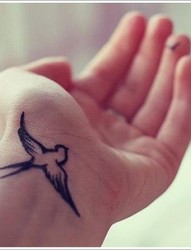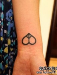 女孩子手腕处图腾爱心与反战符号纹身图片