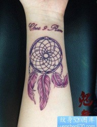 一幅女人手腕羽毛纹身图片由纹身520图库推荐