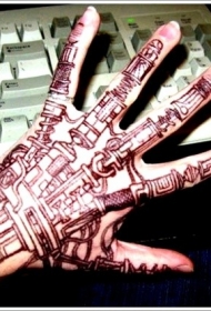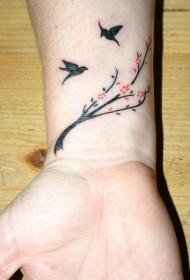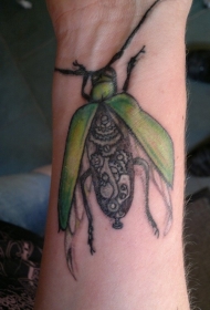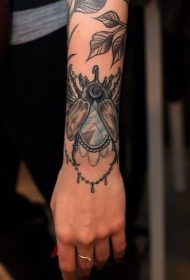 手腕上神秘的蜻蜓形钥匙黑色纹身图案