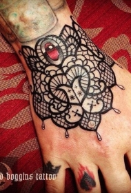 手腕非常漂亮的彩色蕾丝玫瑰纹身图案