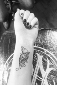 手腕上纹身图案 女生手臂上黑灰的狐狸纹身图片
