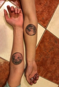 情侣纹身小图案手腕 情侣手腕上黑色的星球纹身图片