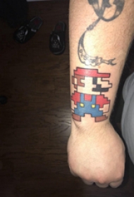 超级玛丽纹身 男生手腕上彩色的超级玛丽游戏纹身图片