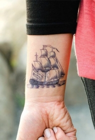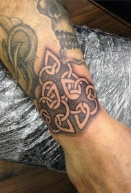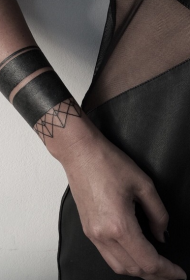 手背雕刻风格黑色玫瑰和饰品纹身图案