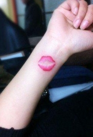 简约唯美的手腕红色唇印纹身图案