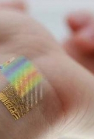 女生手腕上彩色条纹电子纹身图片