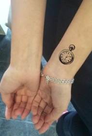 女生手腕上黑色线条素描创意复古怀表纹身图片