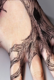 手背个性的黑色树纹身图案