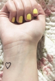 女生手腕上黑色几何元素简单线条爱心纹身图片