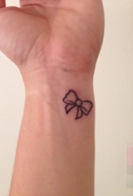 女生手腕上黑色线条简约蝴蝶结纹身图片