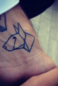 黑色几何折纸狗手腕纹身图案