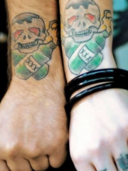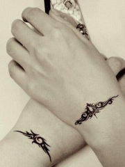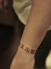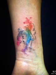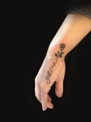 美女可爱的简单个性线条纹身手腕英文和狗纹身图片