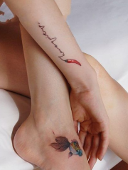 女生脚背金鱼和手臂辣椒个性纹身图案