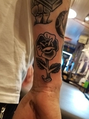 手腕旁的黑色玫瑰花纹身图片