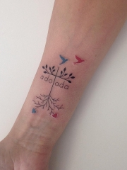 手腕彩绘小清新线条树鸟纹身图案