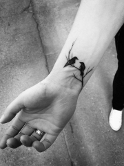 手腕小清新鸟钢笔画风格纹身图案