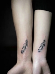 情侣手腕时尚简单的羽毛纹身图案