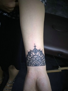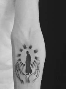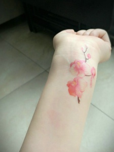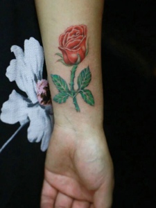 一朵玫瑰手腕纹身刺青鲜艳无比