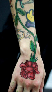 手臂缠绕鲜艳玫瑰纹身图案