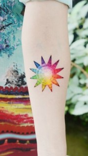 女性手臂彩色太阳纹身