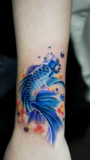 手臂蓝色小金鱼纹身图案