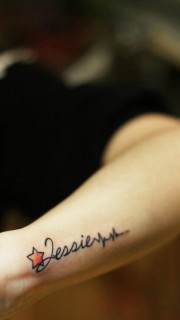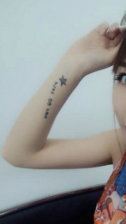 美女手腕上的星星和英文字纹身