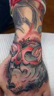 女性手部狼头纹身图案