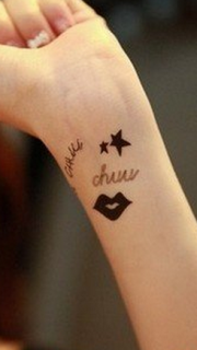 手腕上星星唇印纹身图案